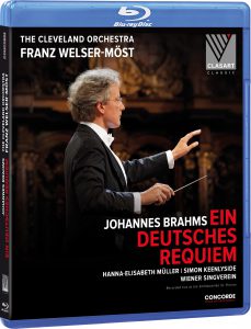 This performance of Ein Deutsches Requiem was recorded live in August 2016 at the Stifstsbasilika St Florian in Linz, Austria. Franz Welser-Möst conducts the Cleveland Orchestra, with soloists Simon and Hanna-Elisabeth Müller.
