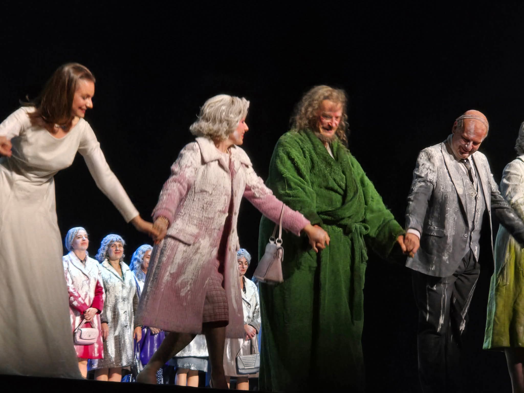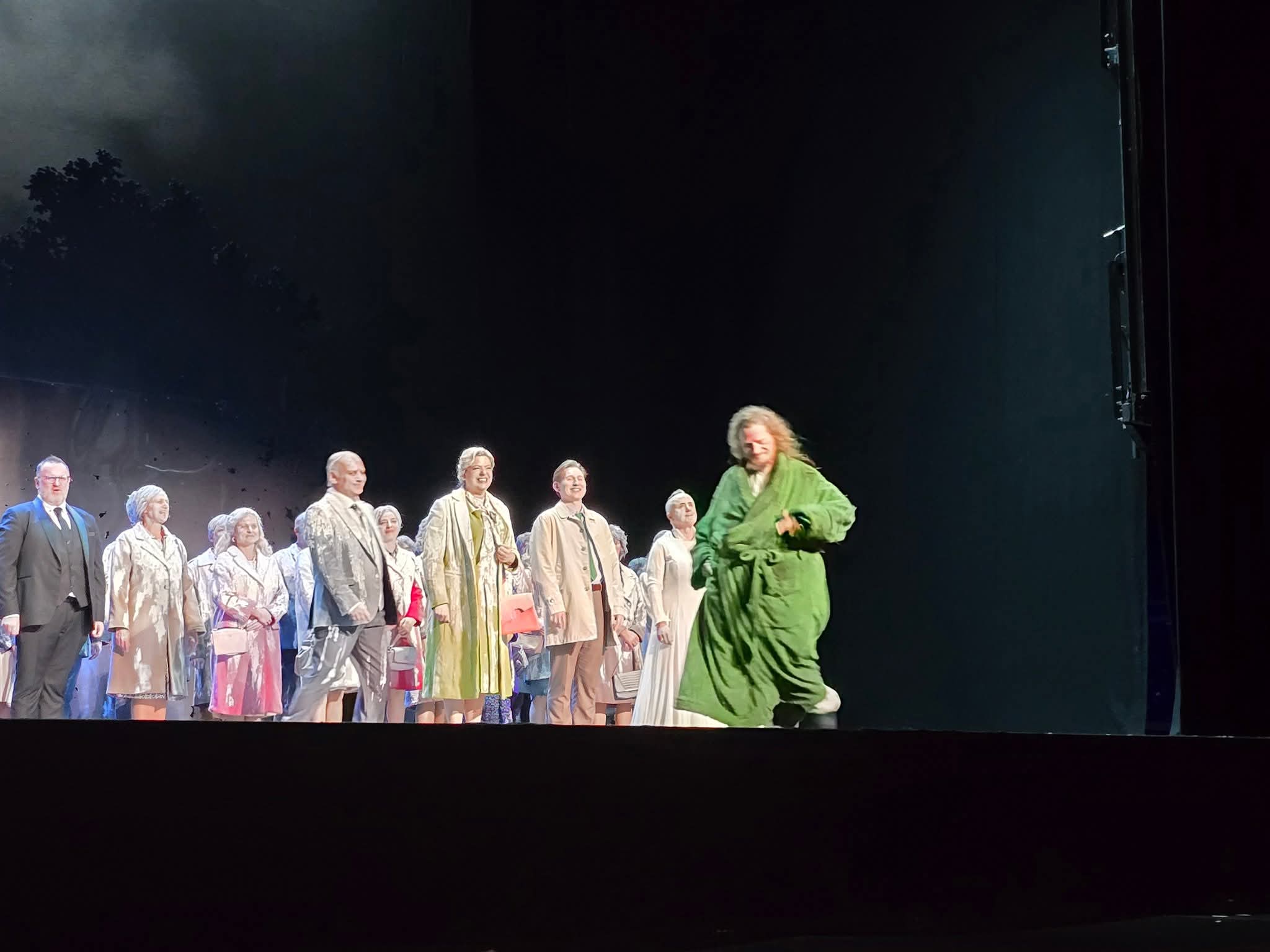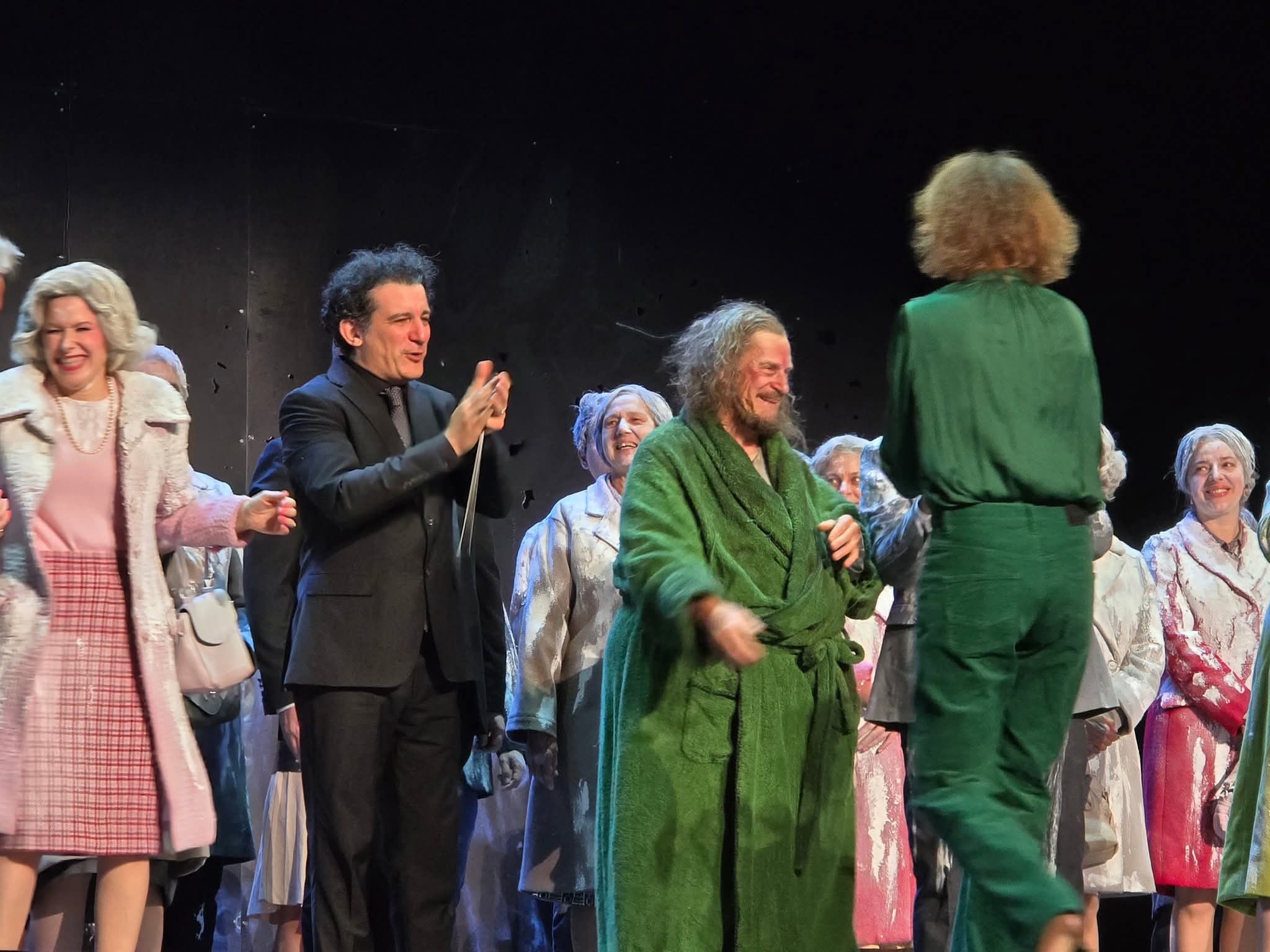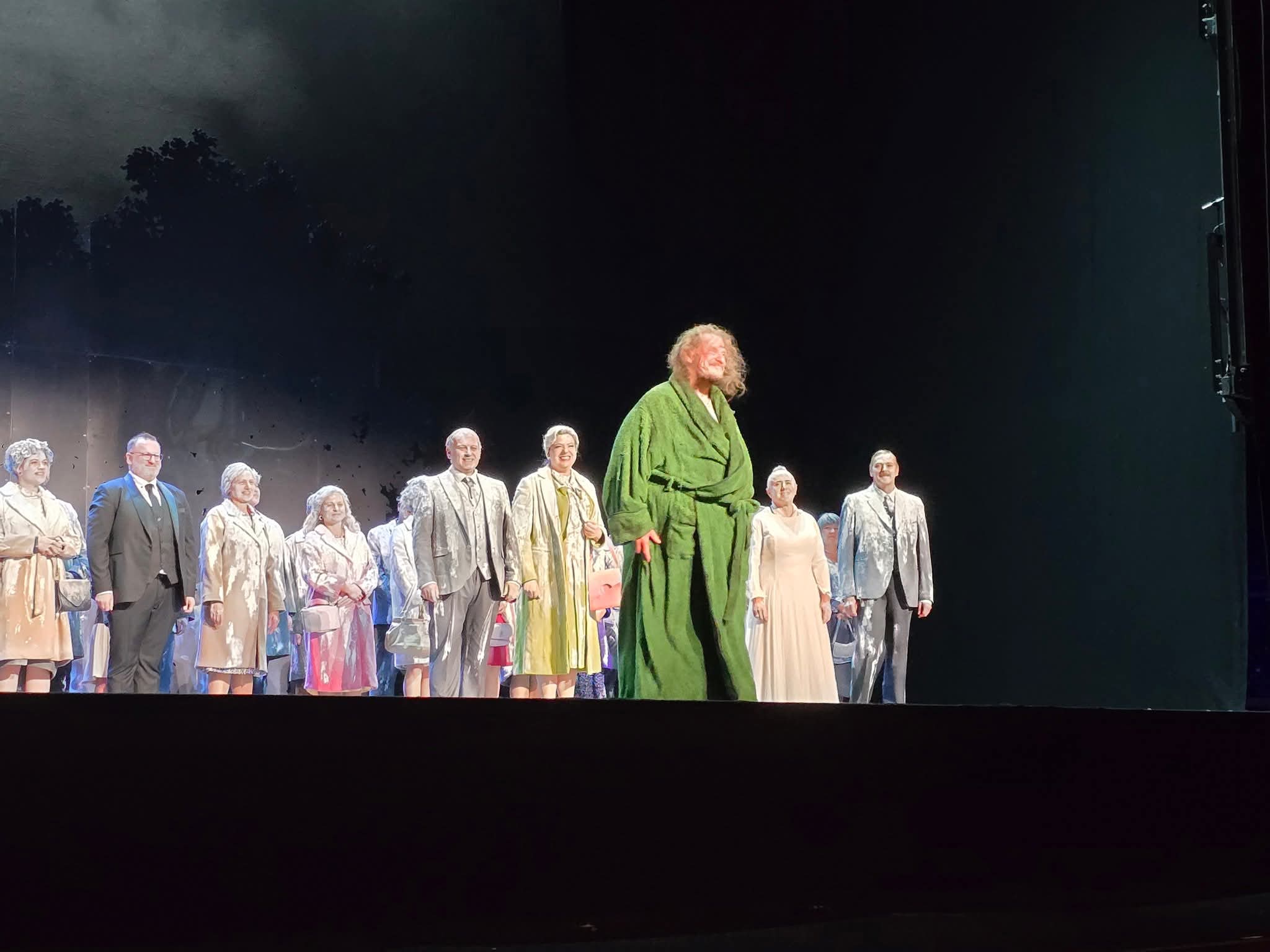 Sir John Falstaff is nicknamed "il Pancione" (The Pot-bellied One). He feasts every day at the inn, and, as an inconsistent and pretentious bon vivant, he gets into debt and believes himself clever enough to dupe women, writing ridiculous letters to seduce them. Suffice it to say, this is a far cry from the "urban" style, so chic and so British, of the baritone Sir Simon Keenlyside, whom we so loved in his roles as elegant dandies, such as Don Giovanni. But on stage, anything is possible. And literally transformed, Keenlyside perfectly plays the role of the ridiculed jester, adorned with a seemingly "natural" belly and dressed in loose-fitting clothes. He deceives the audience with an unfamiliar eloquence that hits the mark.
