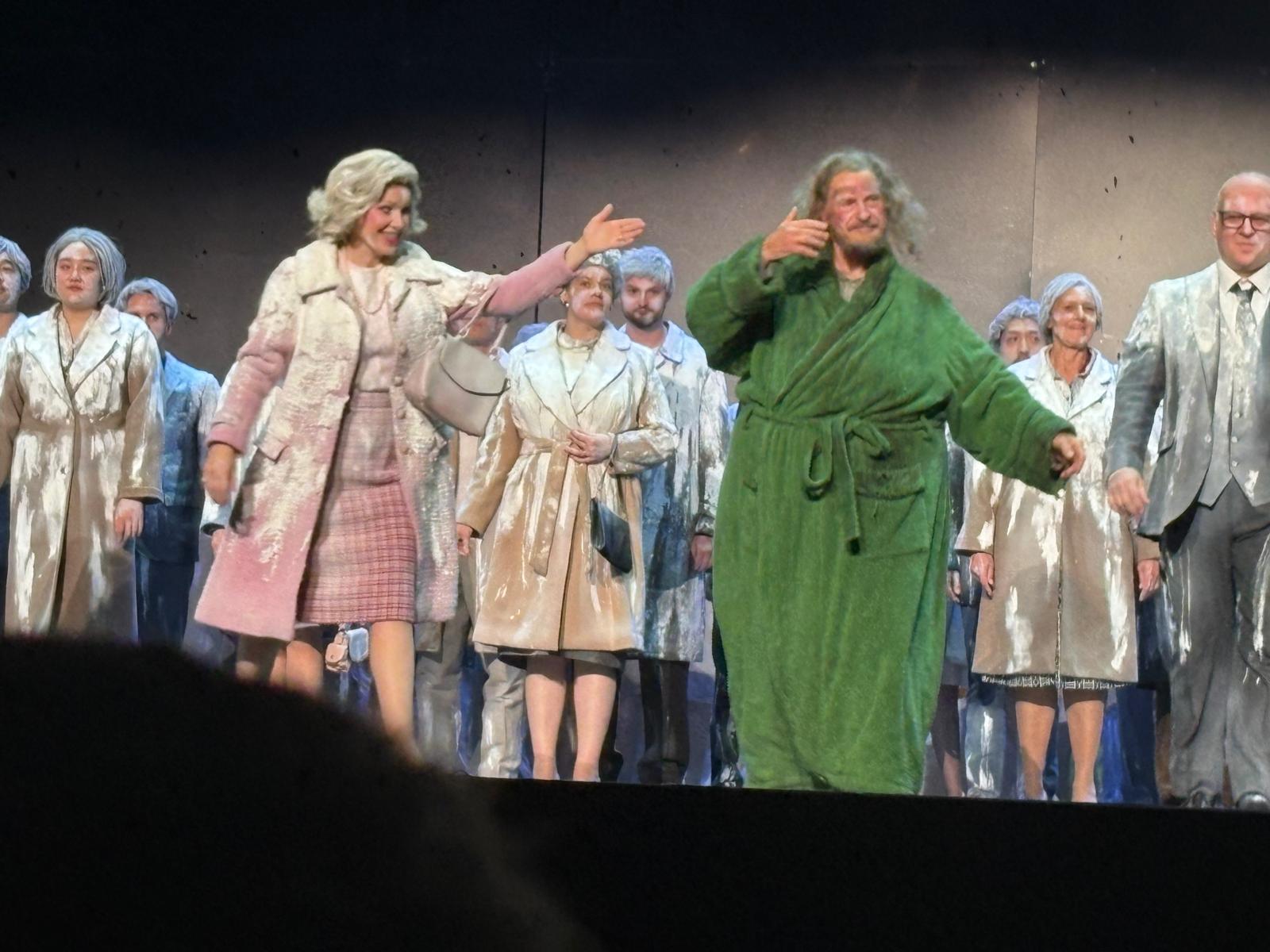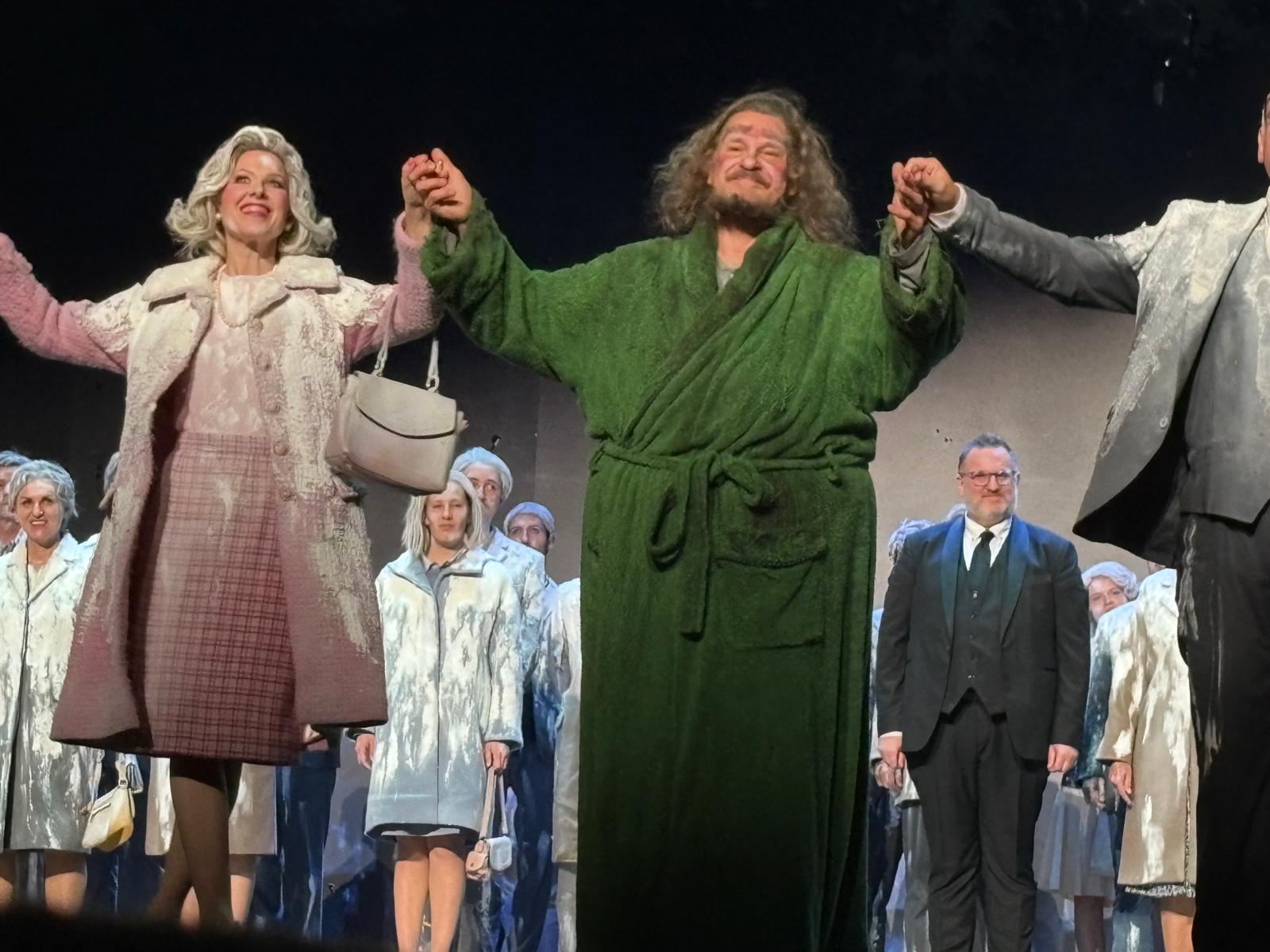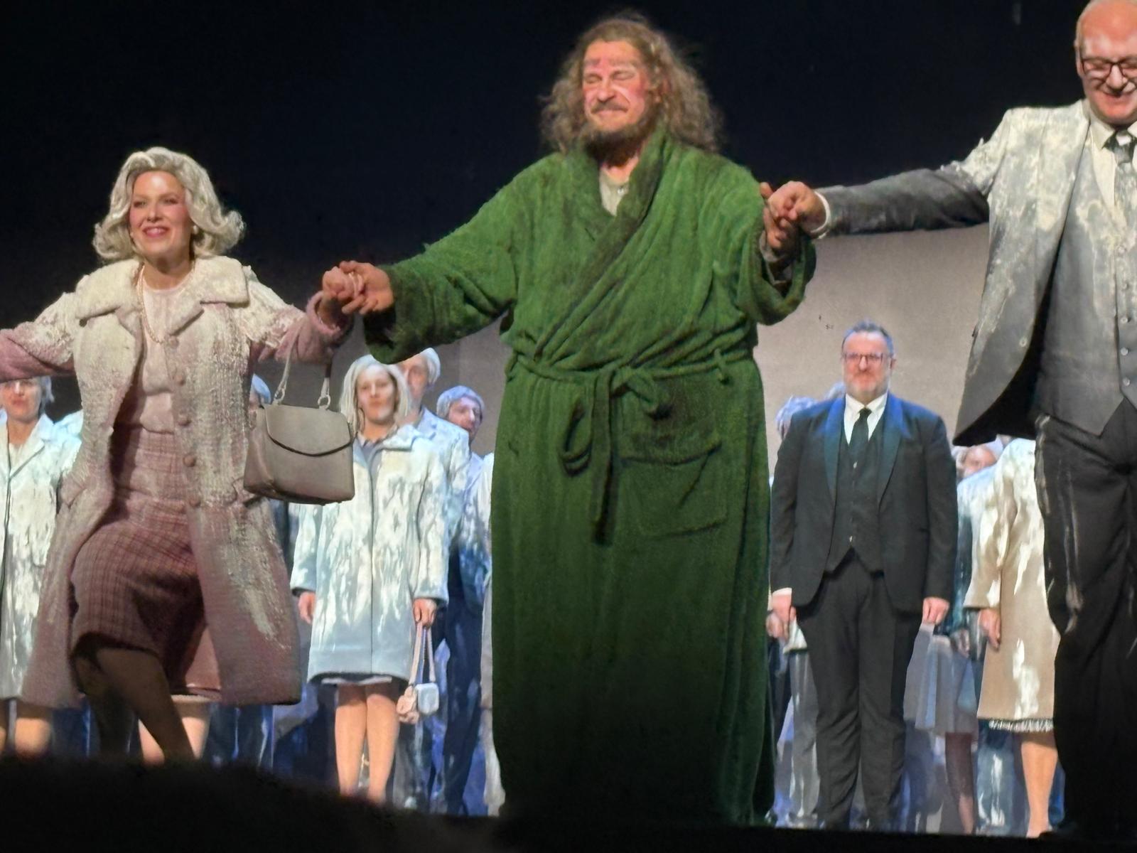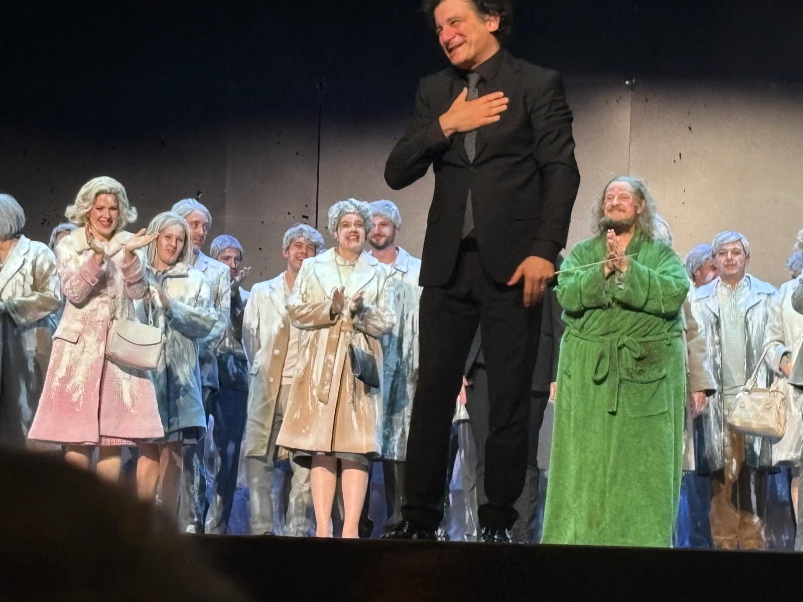 Sir John Falstaff is nicknamed "il Pancione" (The Pot-bellied One). He feasts every day at the inn, and, as an inconsistent and pretentious bon vivant, he gets into debt and believes himself clever enough to dupe women, writing ridiculous letters to seduce them. Suffice it to say, this is a far cry from the "urban" style, so chic and so British, of the baritone Sir Simon Keenlyside, whom we so loved in his roles as elegant dandies, such as Don Giovanni. But on stage, anything is possible. And literally transformed, Keenlyside perfectly plays the role of the ridiculed jester, adorned with a seemingly "natural" belly and dressed in loose-fitting clothes. He deceives the audience with an unfamiliar eloquence that hits the mark.