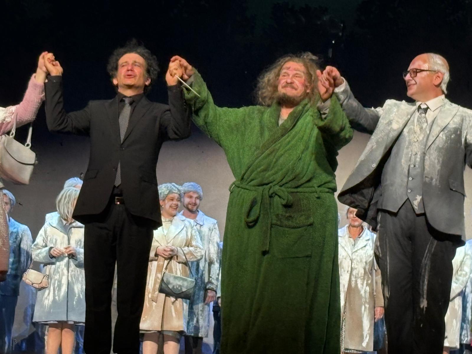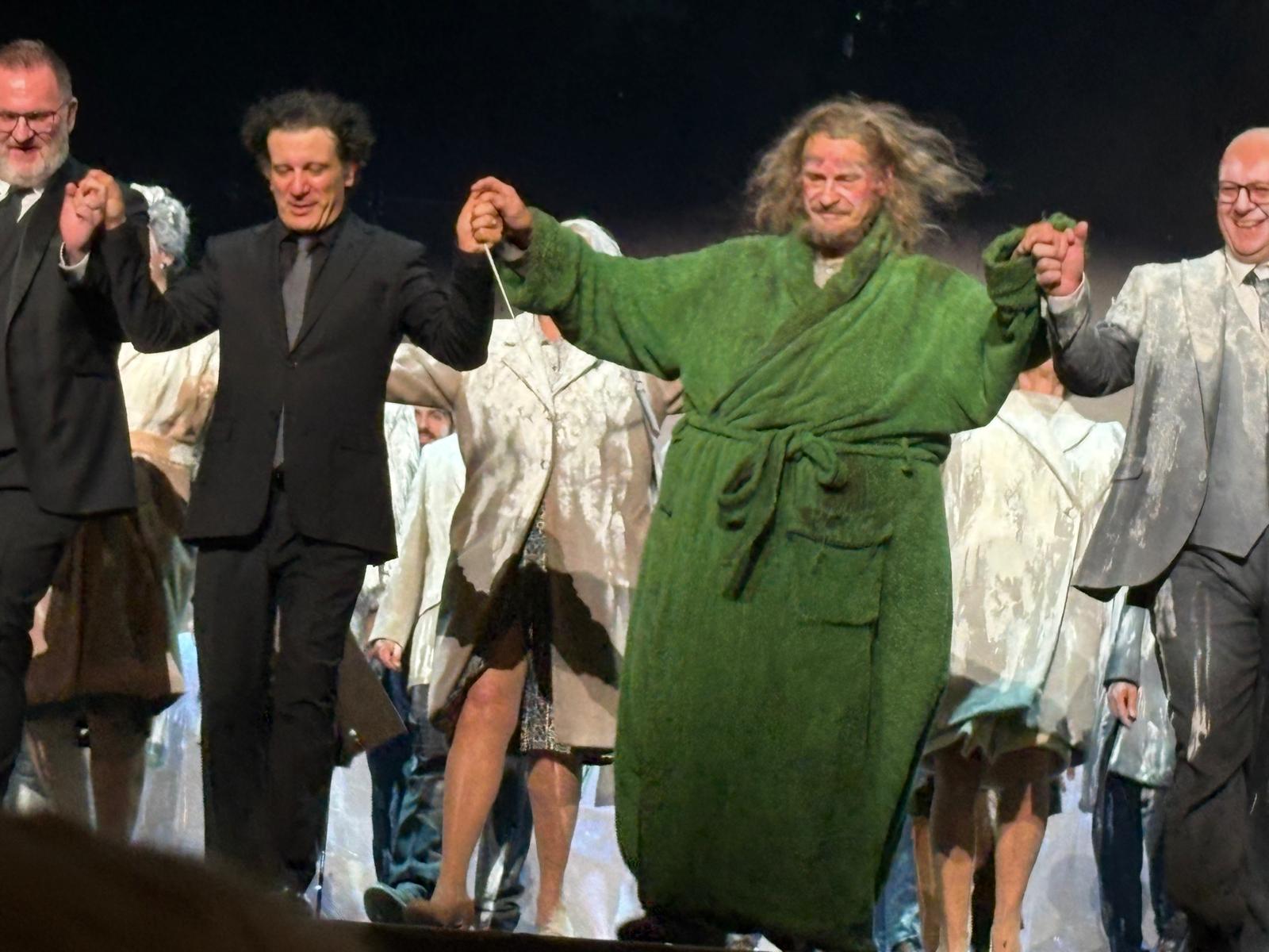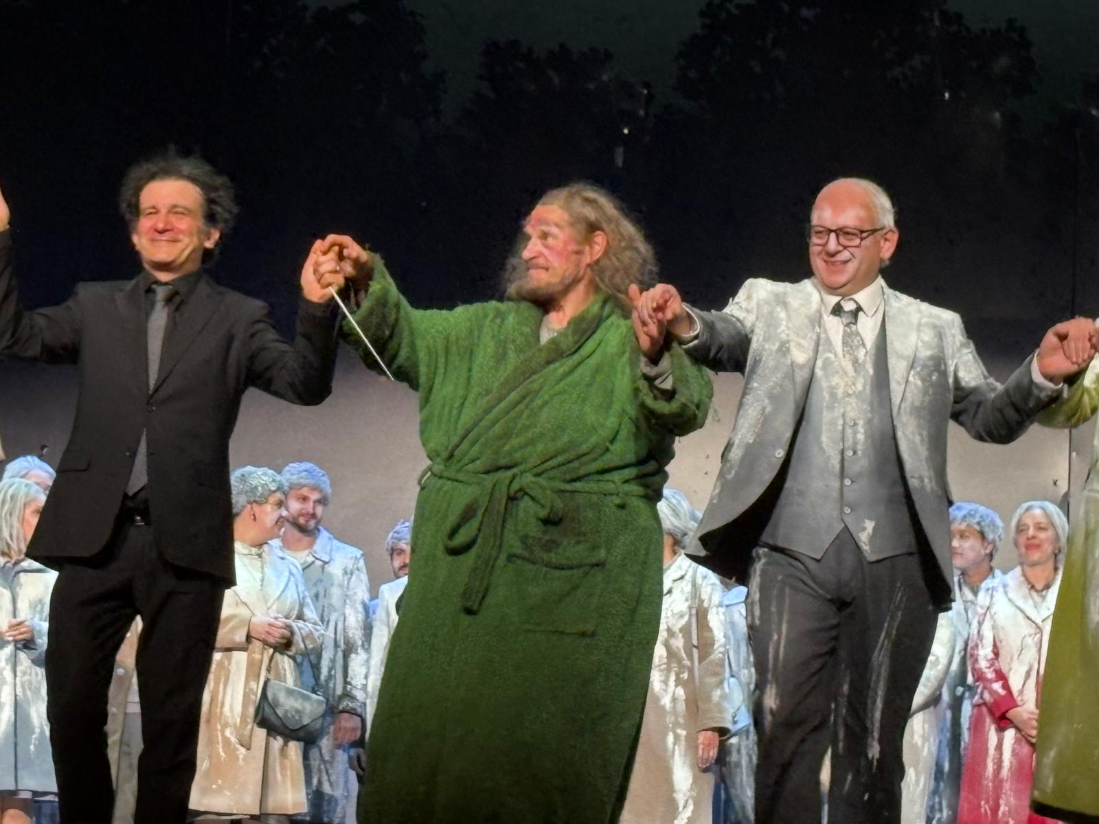 The timbre is as sumptuous as ever in the acoustically perfect hall of La Monnaie, its harmony with the orchestra and Altinoglu's energetic drumming, absolutely perfect, like his playing, without excess, but with just the right amount of comedy. From the inn scene where he confronts two tenors, Doctor Cajus (John Graham-Hall) and Bardoflo (Mikeldi Atxalandabaso), his beautiful baritone voice with its solid bass bursts onto the stage with the power and authority of a character confident in himself and his power.